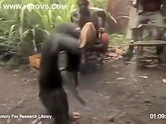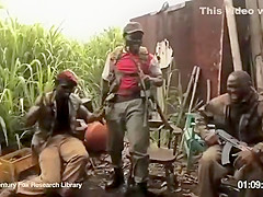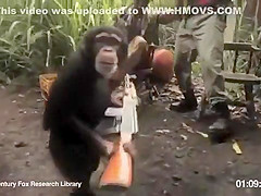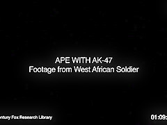A group of African soldiers thought it would be funny to see the chimp carrying a gun, that was until the chimp starts shooting at them. Rise of the Planet of the Apes!!!