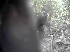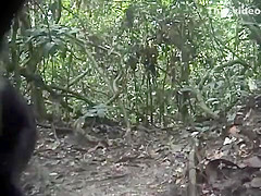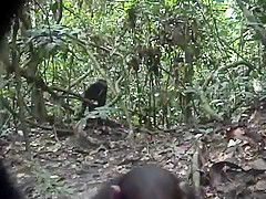 A camera set up in the jungle attracts some curious chimps.