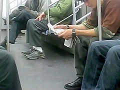 This guy shines his shoes using his tongue while on the New York Subway. Gross!!!