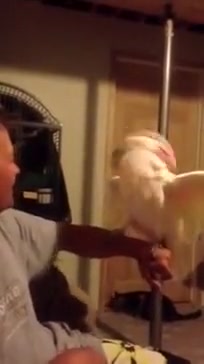 While trying to watch a movie, this guy's cockatoo went nuts! Cool bird but that thing would drive me crazy.