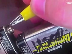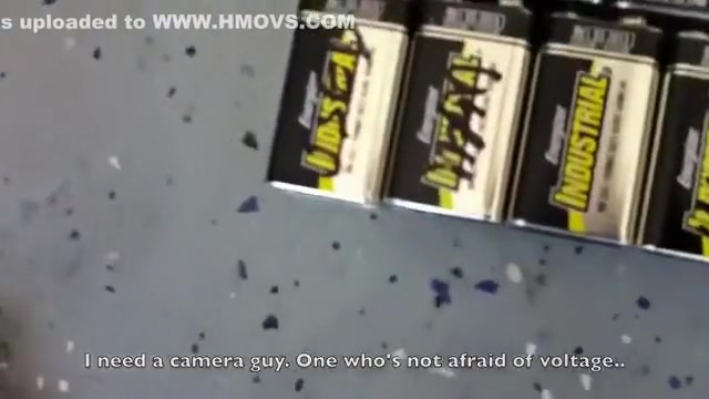 What kind of spark can you generate when you connect 244 9 volt batteries together in series?