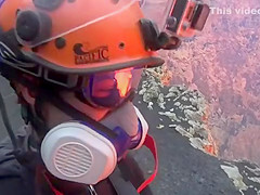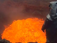 Crazy Guy Hikes Into An Active Volcano