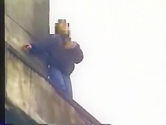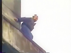 This guy attemps to outrun the cops by leaping off the building. Not a good idea.