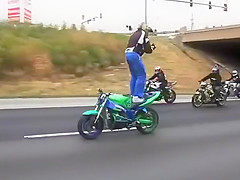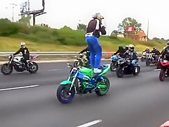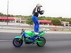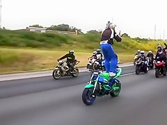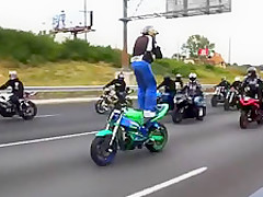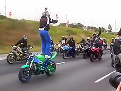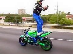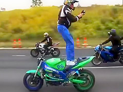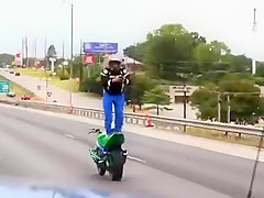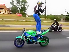Crazy Motorcycle Rider Standing Backwards While Text Messaging