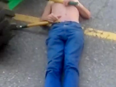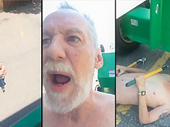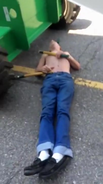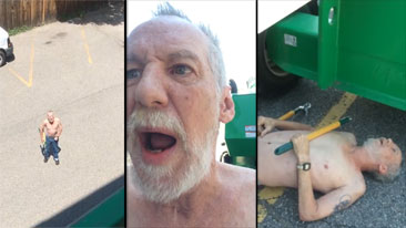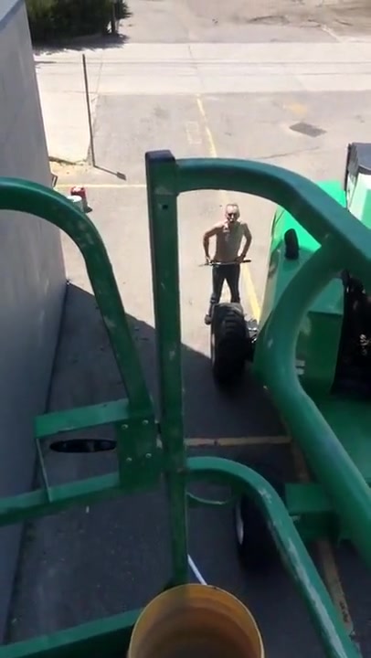 Crazy Old Guy Knocked Out After Attacking a Painter In a Lift