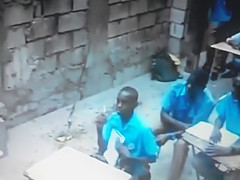 The two kids sitting behind him keep slapping him in the head until he snaps.