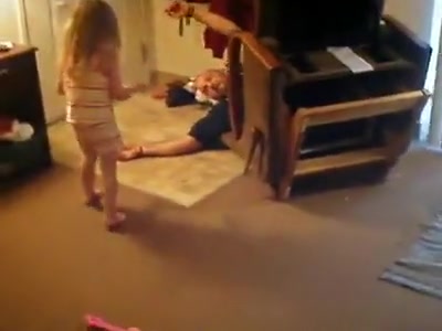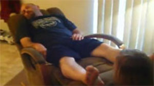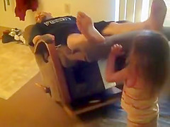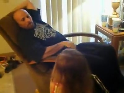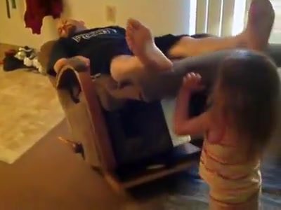 Daughter Flips Dad Over While He Sleeps In a Recliner
