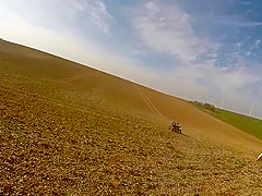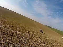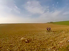 A person riding an ATV gets taken out by a deer.