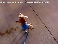 Dog Pees Standing on 2 Paws