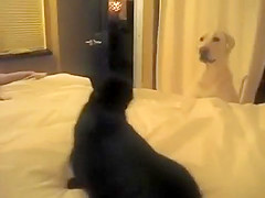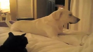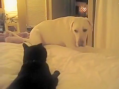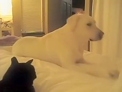 Dog is scared of the Cat