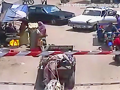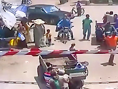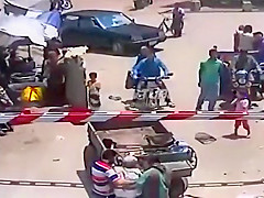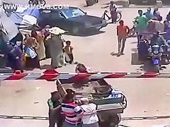 A depressed donkey attempts to drag his owner into a train.