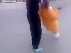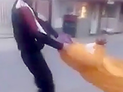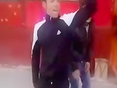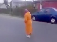 A drunk Romanian thug grabs this poor old woman and starts swinging her around. WTF!