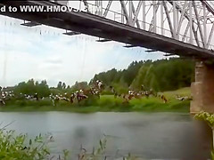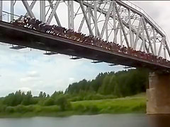 A mass bridge jumping took place in Russia in an attempt to break the world record.
