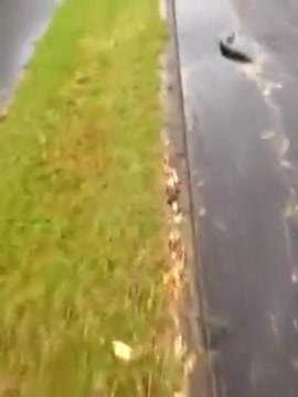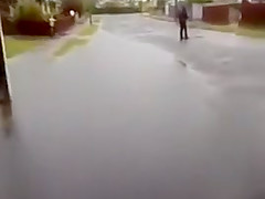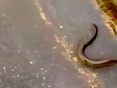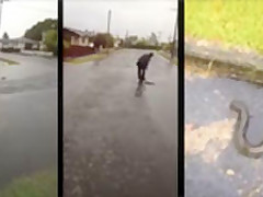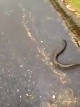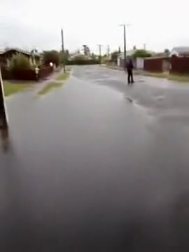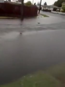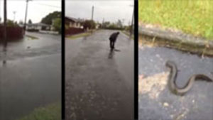 A storm causes the street to flood and fresh water eels swimming in the gutters.