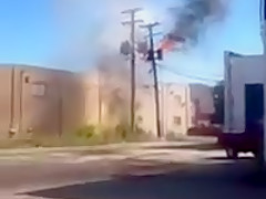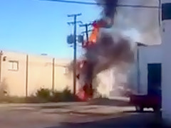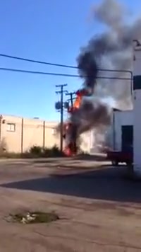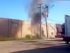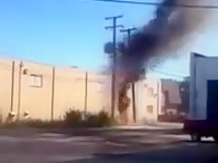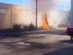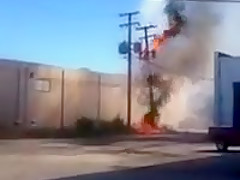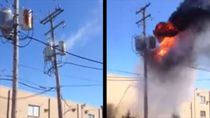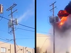 An electrical transformer malfunctions and explodes into a giant fireball.