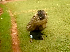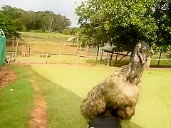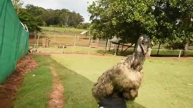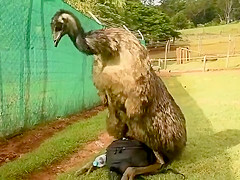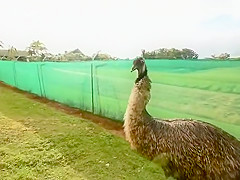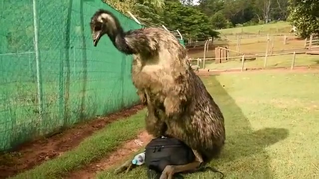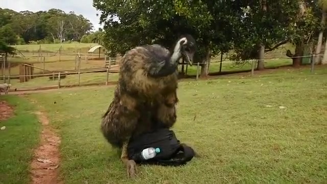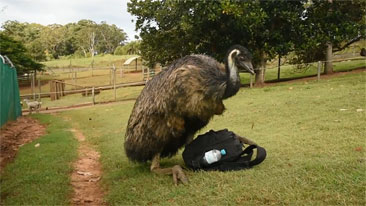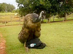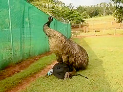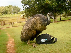 The mood strikes this Emu and he goes to town on my camera bag.