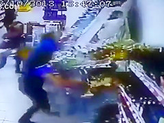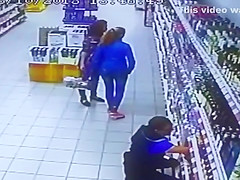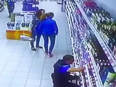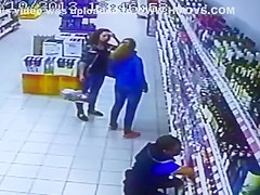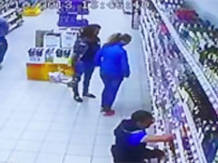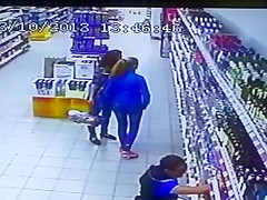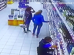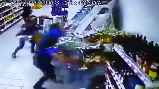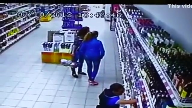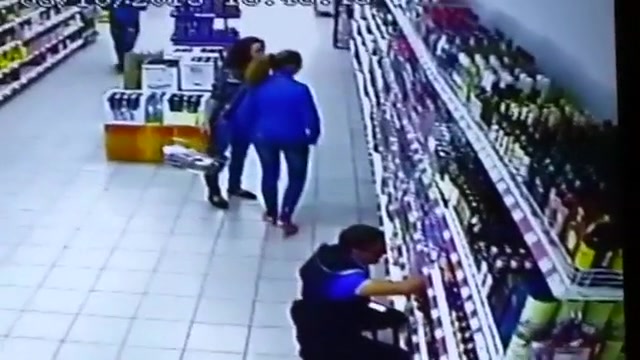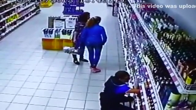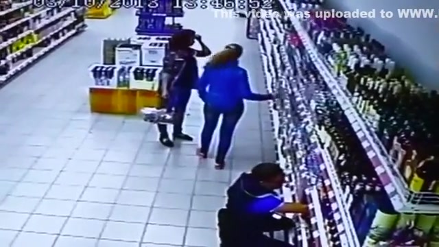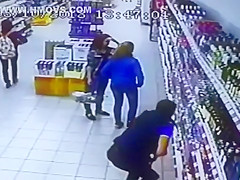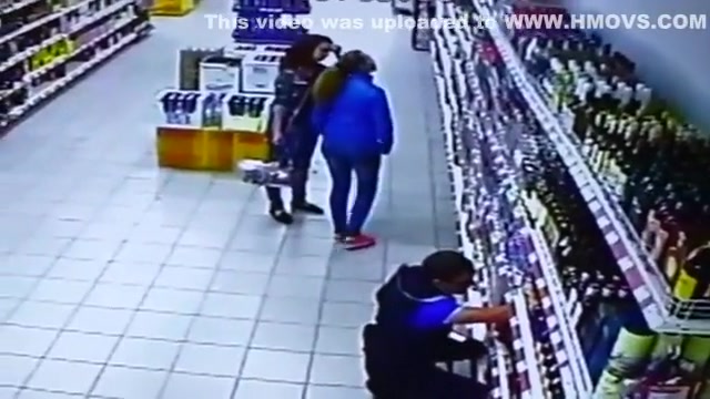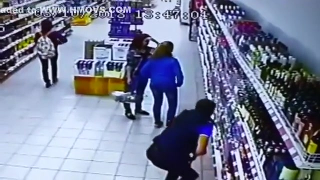 The entire liquor shelf comes crashing down on these girls shopping for some drinks. Wait for it...