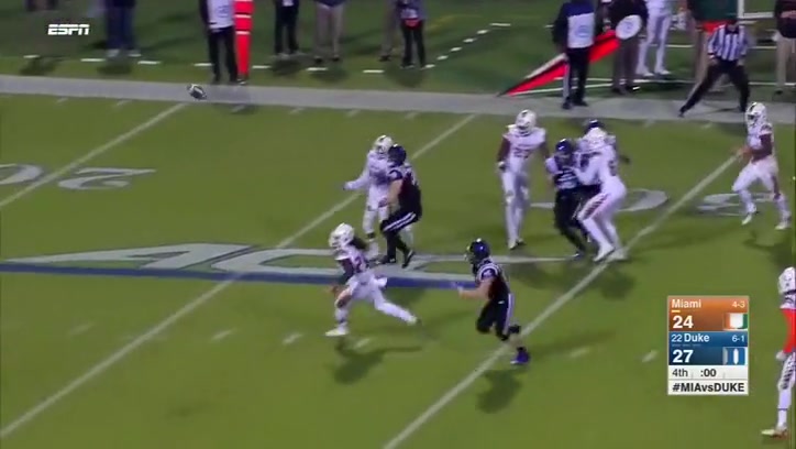 Miami pulls off an amazing kickoff return at the end of the game for the win.