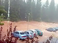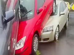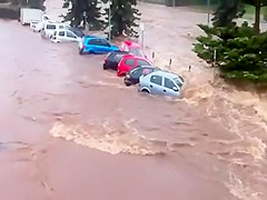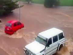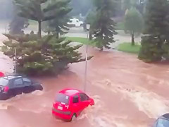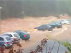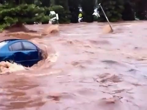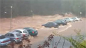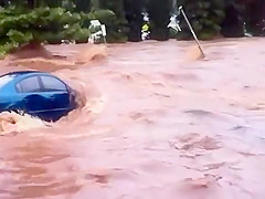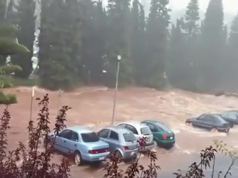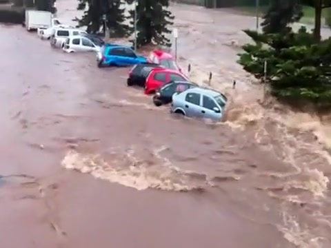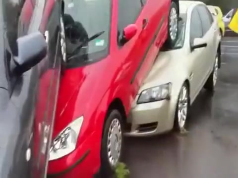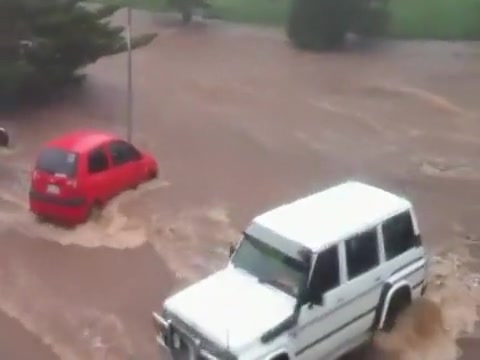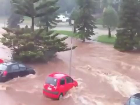 Within minutes the parking lot is swept away in a flash flood in Queensland Australia.