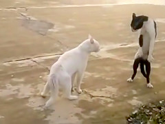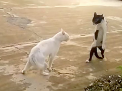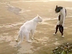 Frankenstein cat? In the year 2020 all cats will be walking on their hind legs.