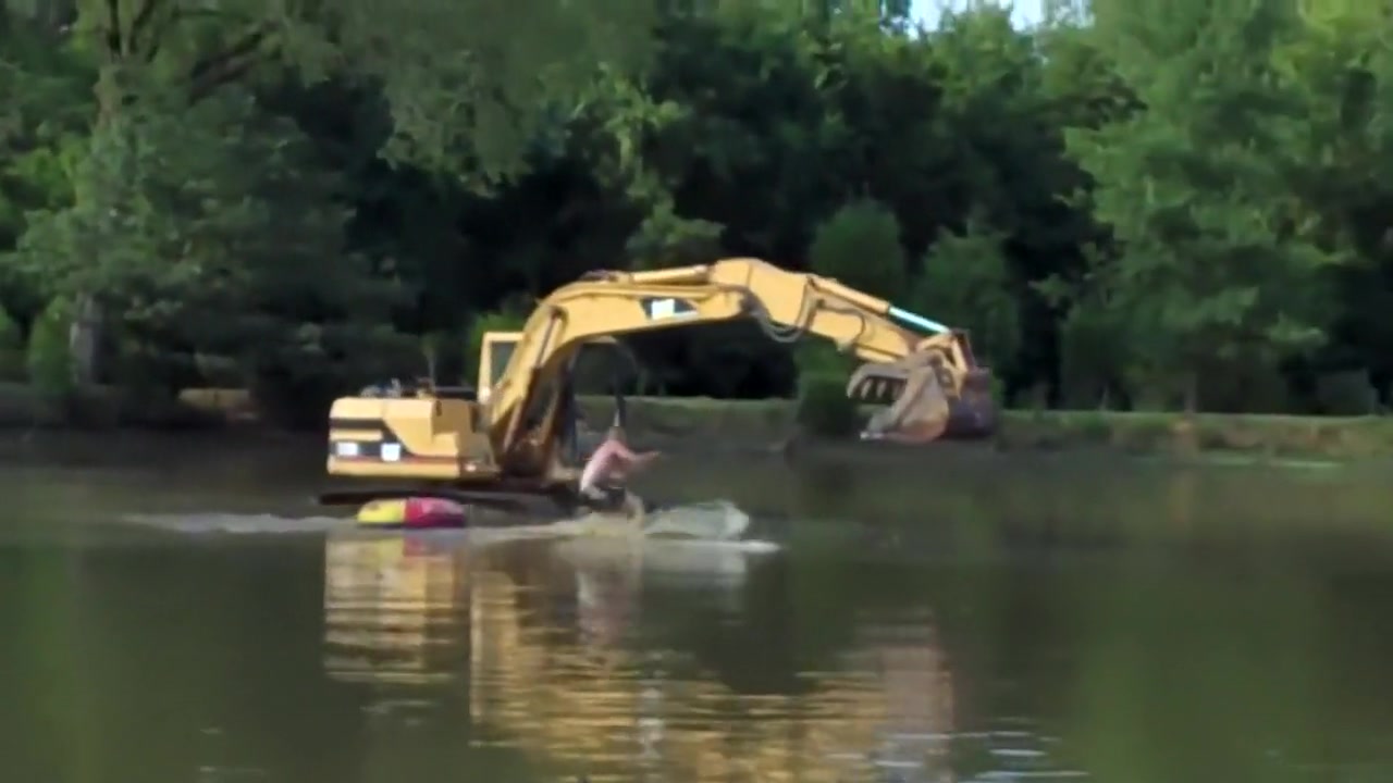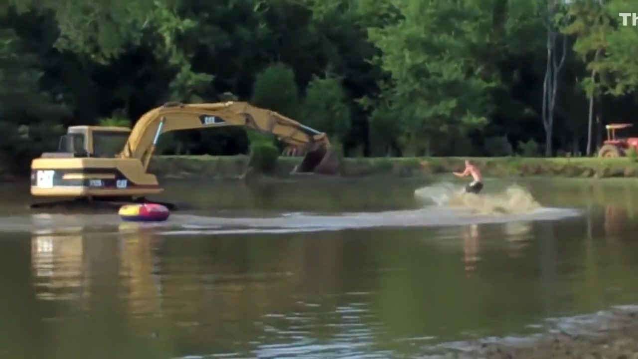 Don't got a boat? No problem, just use an excavator to water ski.
