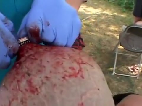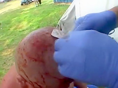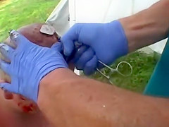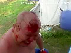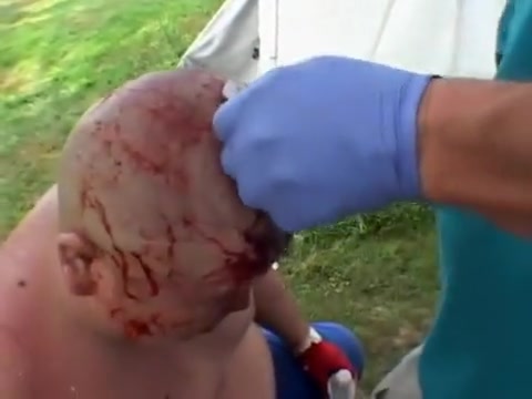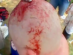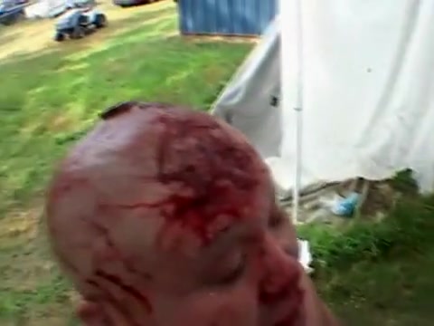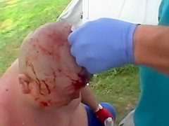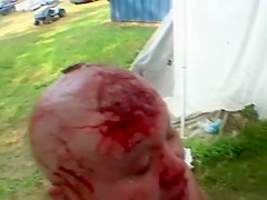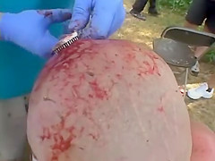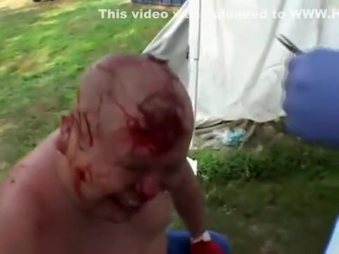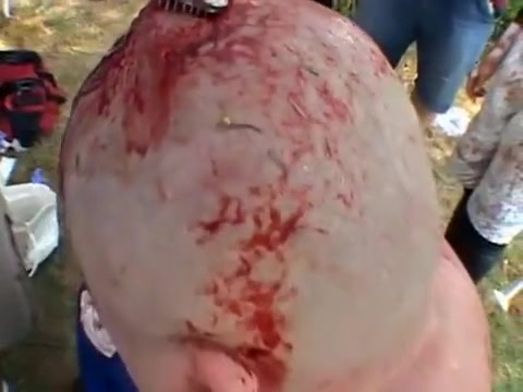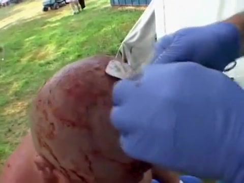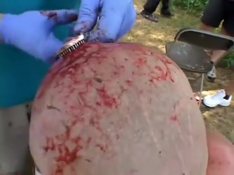 Extreme wrestler Abdullah Kobayashi gets spikes pried from his head after a crazy wrestling match. BLOOD WARNING...