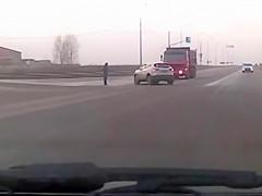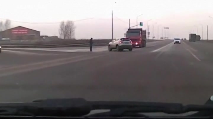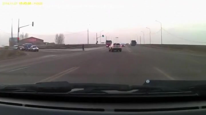 Super Close Call For Lucky Pedestrian