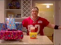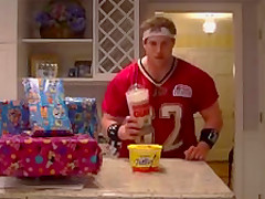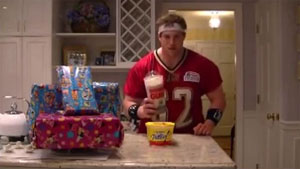 It's called the brain freeze challenge. The idea is to eat ice cream fast and sprint across a butter coated floor while carrying presents. What could go wrong?