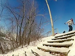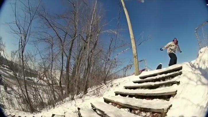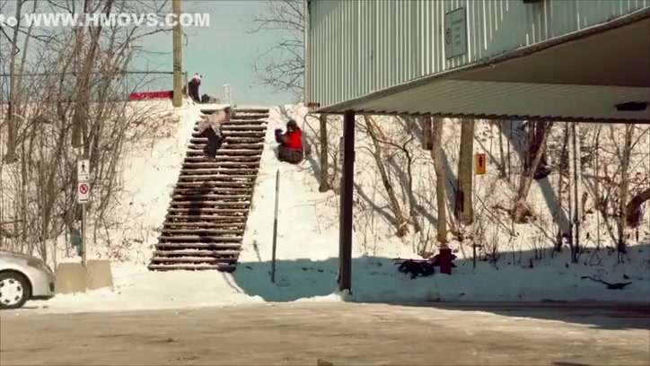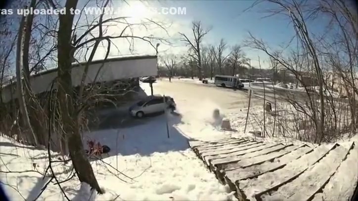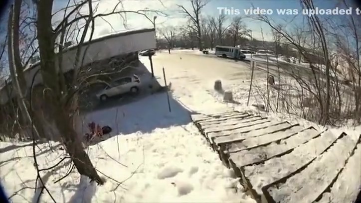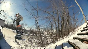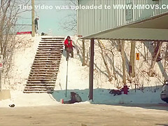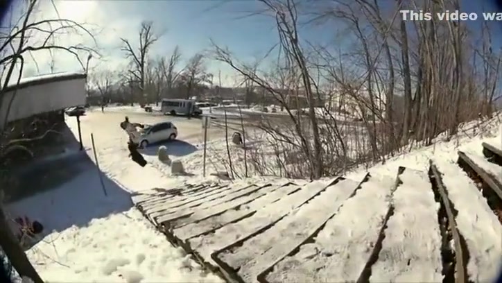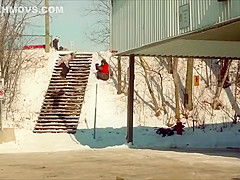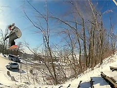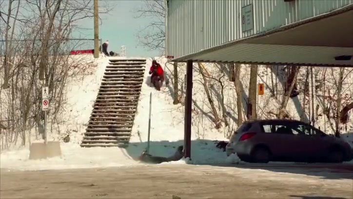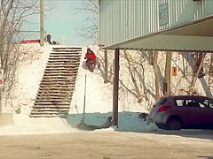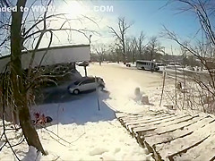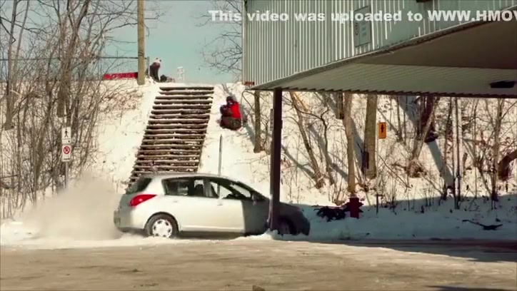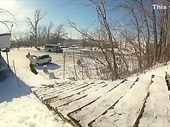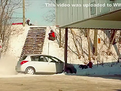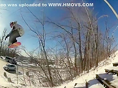 Fail Snowboarder Jumps Into a Moving Car