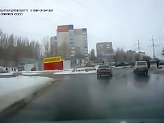 Lucky Pedestrian Evades Drag Racers and Driver Crashes