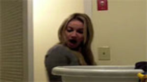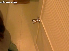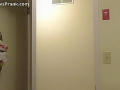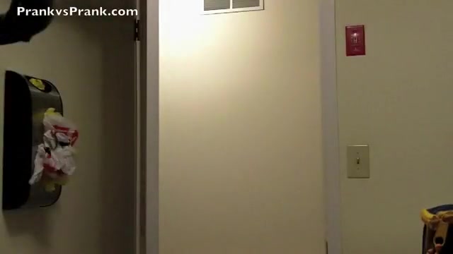 This guy scares his girlfriend with a fake rat in the laundry room.