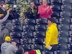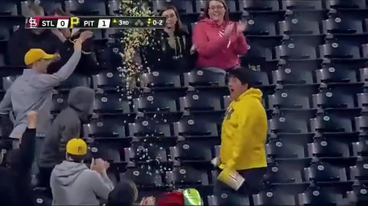 Fan Catches Baseball In His Tub of Popcorn