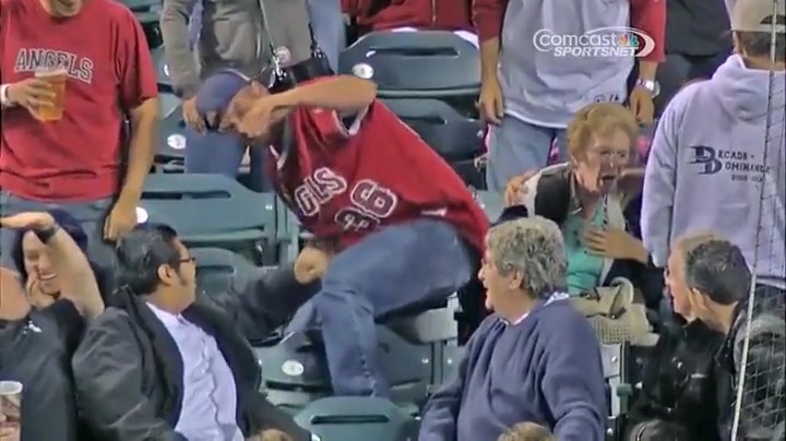 Fan Crushes Old Woman Going For Foul Ball