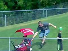 Fan Lets Kid In Stroller Roll Downhill So He Can Catch Ball