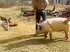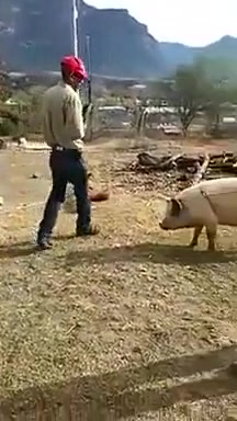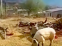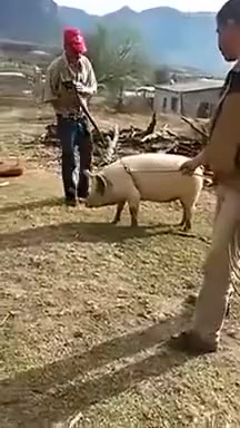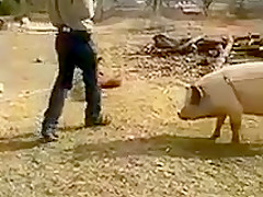 Farmer Tries To Knock Out Pig and Almost Kills Himself