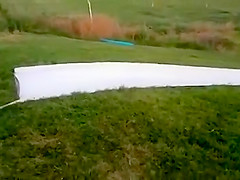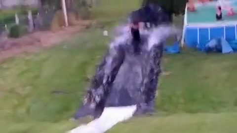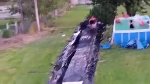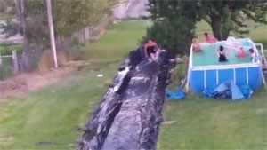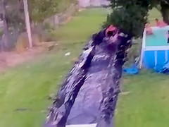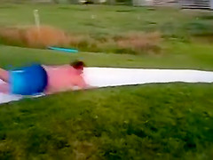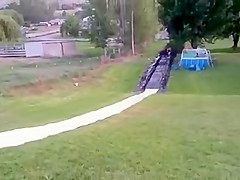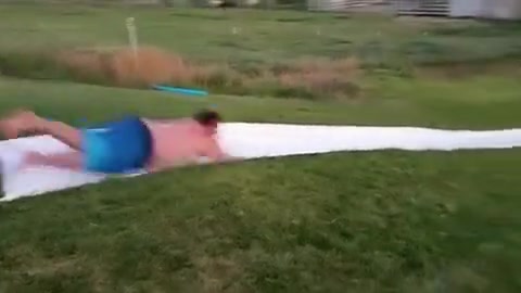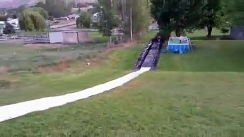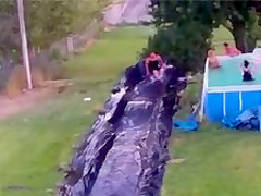 Fat Dude Launches Off Slip n' Slide Into a Tree