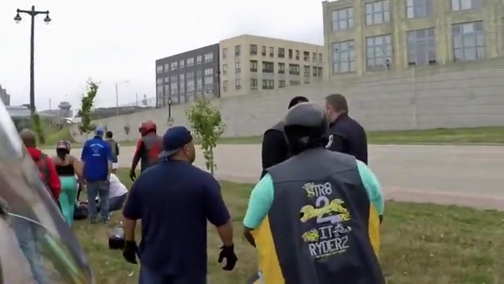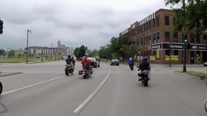 Watch a white cop run a black motorcyclist off the road.