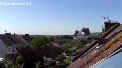 A fighter jet crashes during an air show.