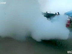 They light the tire on fire and do a nice burnout.
