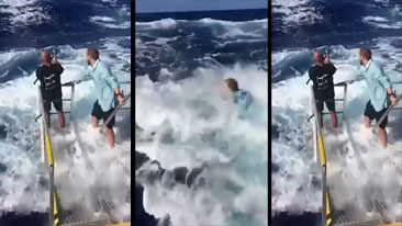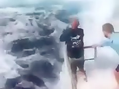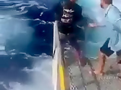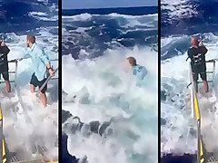 Fisherman Gets Fully Submerged While Reeling In Fish