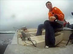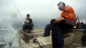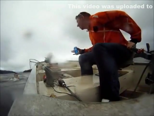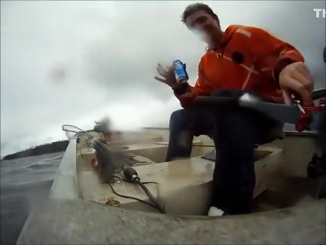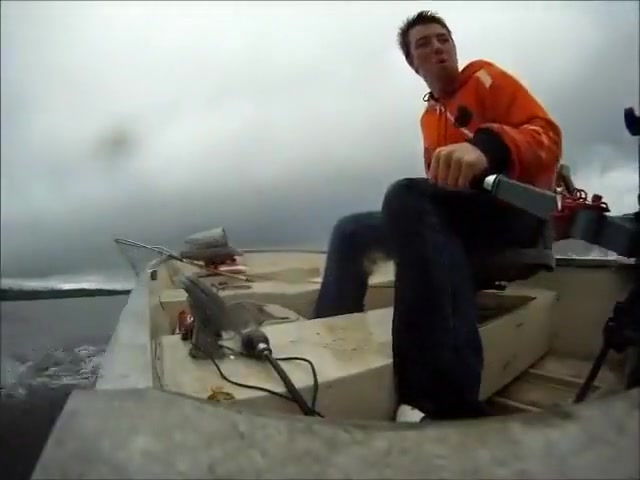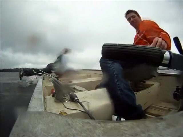 A fisherman wasn't holding on tight enough and goes overboard after hitting a wave.