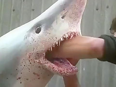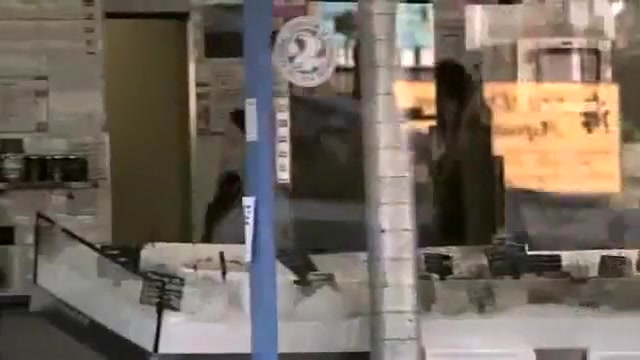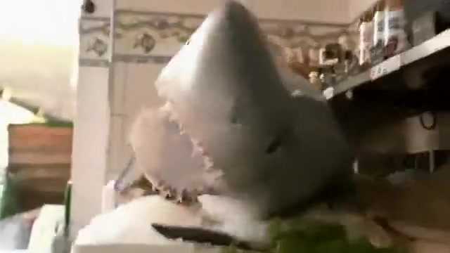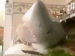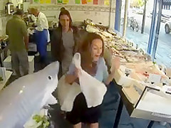 Watch customers get scared to death by a shark in a seafood store.