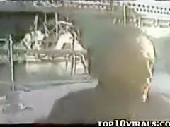 This drunk dude accidently shoots himself in the head with a flare gun.