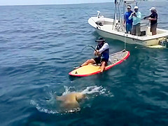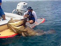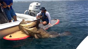 Florida Fisherman Catches Huge 7ft Grouper On a Paddle Board