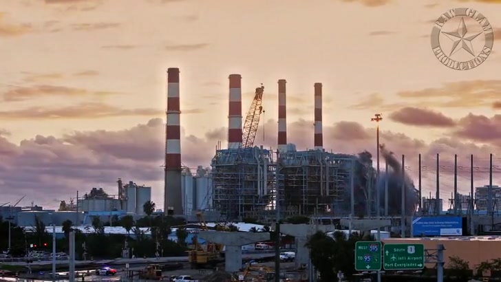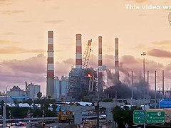 Florida blasts away an old oil power plant to make way for a newer and cleaner power plant. BOOM!