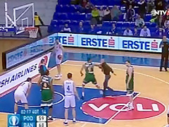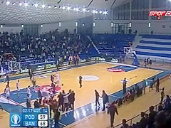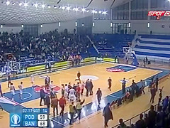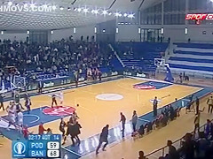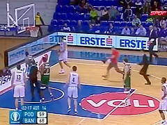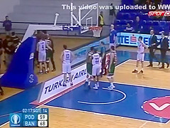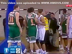 Angry Fan Attacks Basketball Player, Gets Clotheslined By Teammate