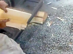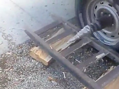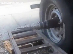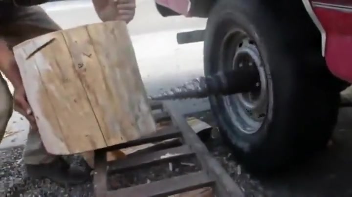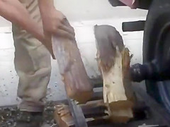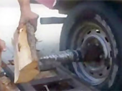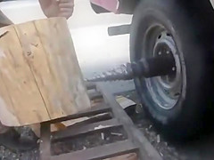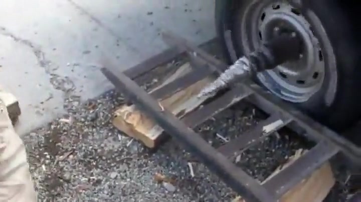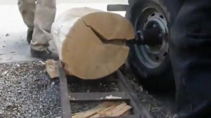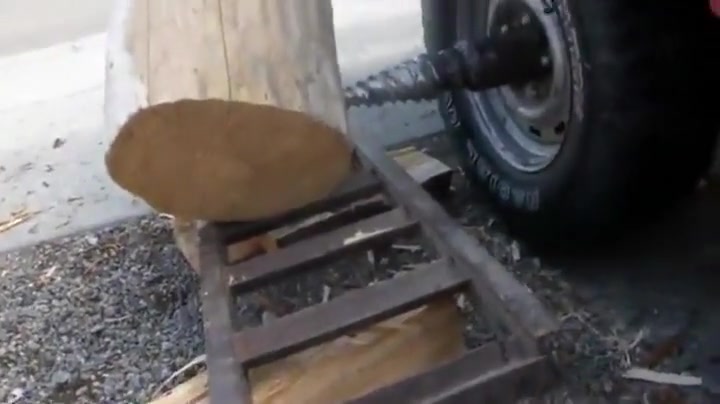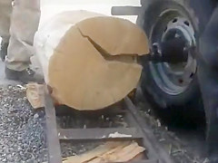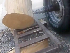 Check out this guy's awesome invention. It's a log splitter death machine.