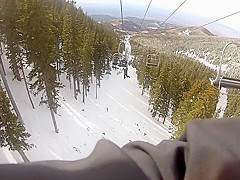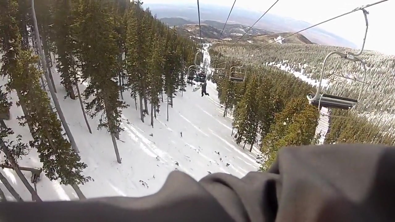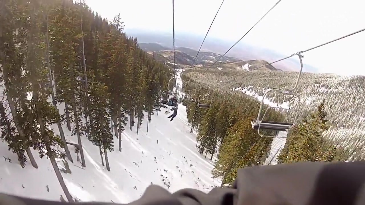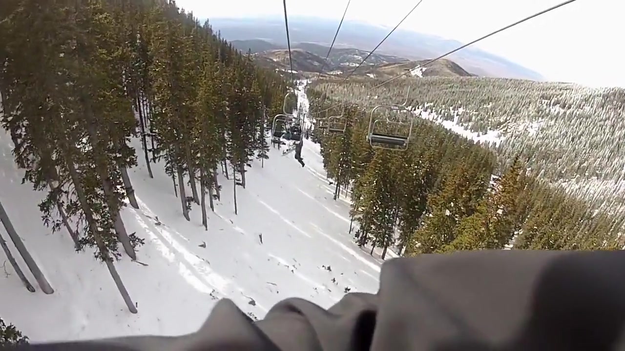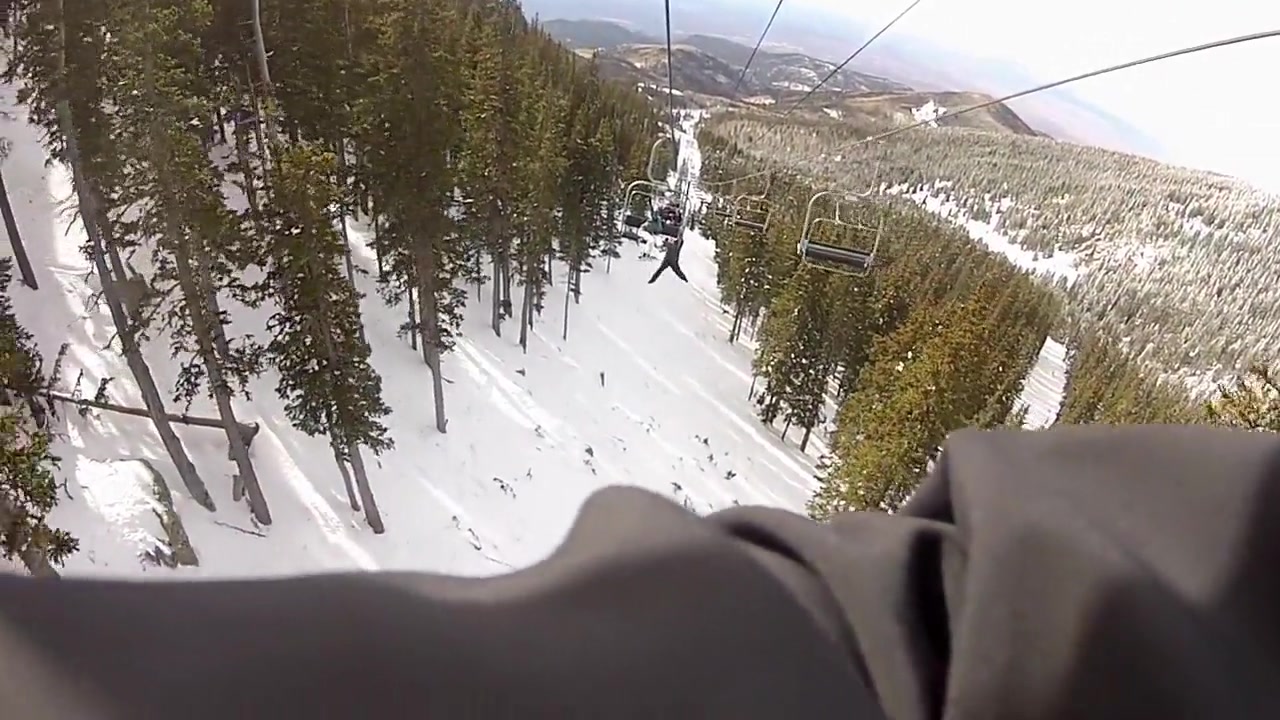 My friend falls off a ski lift.