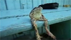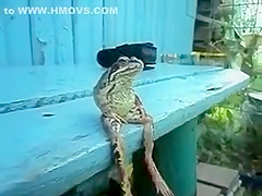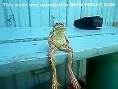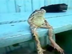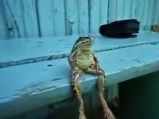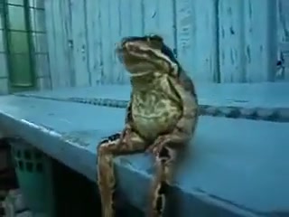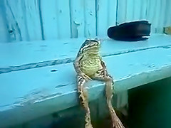 Someone get this frog a fishing pole and a beer!