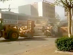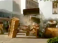Angry construction workers battle it out with heavy machinery!